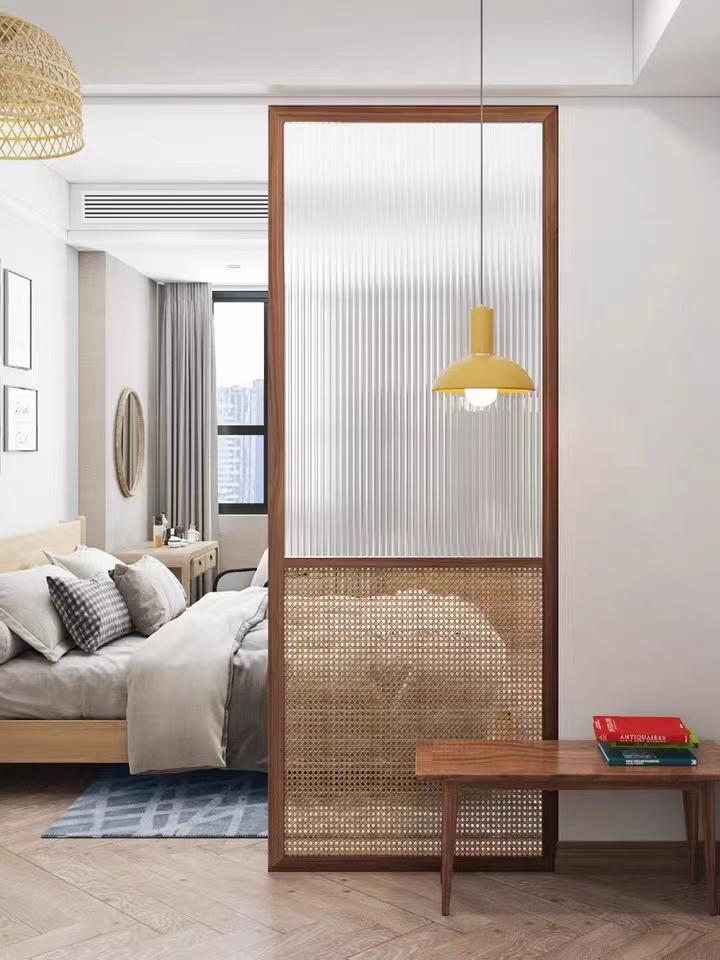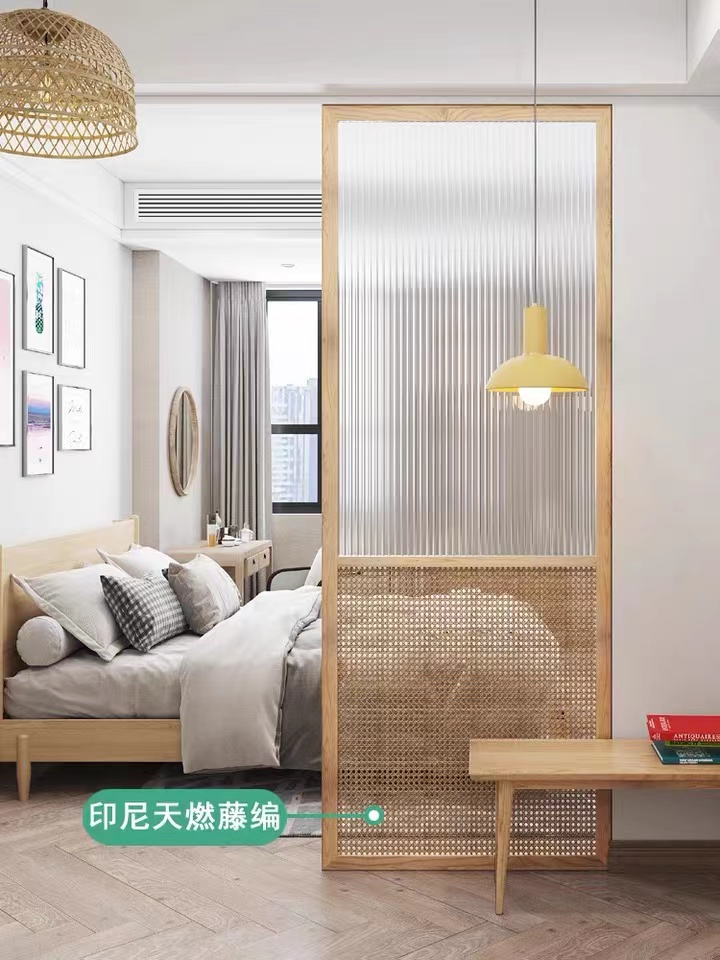 Rattan solid wood entry porch Changhong glass screen partition living room bedroom Japanese-style partition screen decoration customization