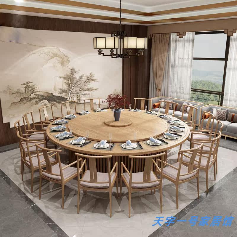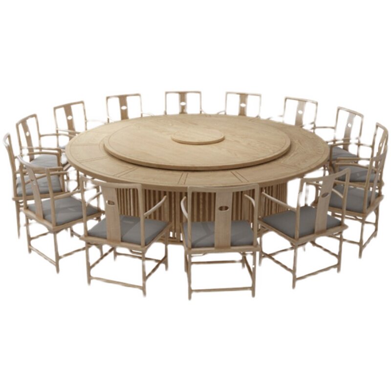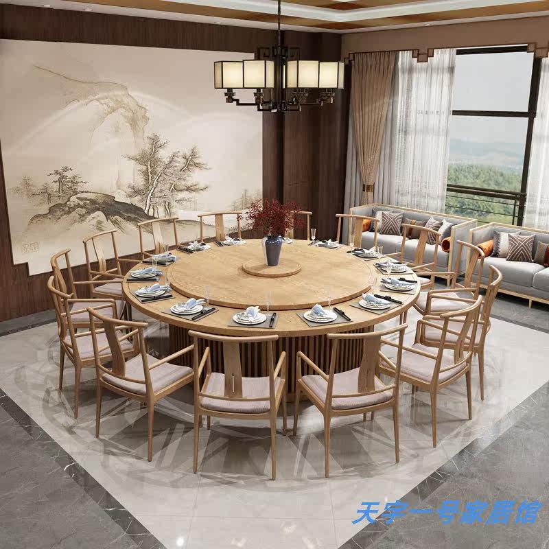 New Chinese solid wood electric big round table minimalist hotel dining room Dining Room Dining Table And Chairs Combined Original Wood Color Furniture