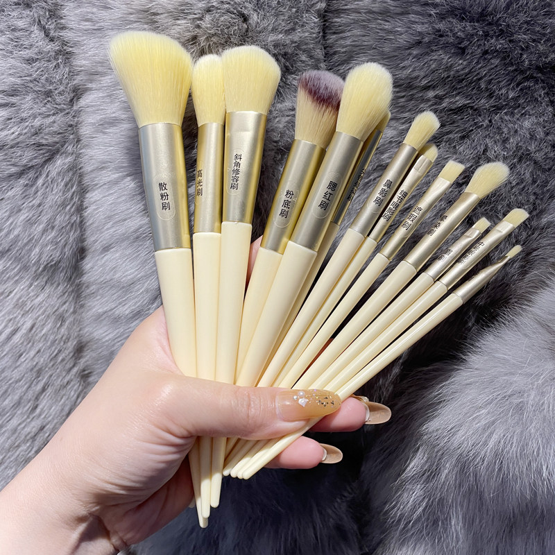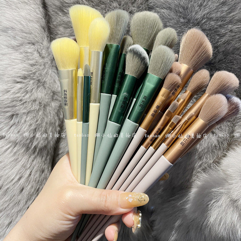 13 cheese yellow makeup brush 13 pink makeup brush 13 ink green makeup brush 8 cream almond makeup brush Short handle 8 smog blue makeup brush Short handle 8 thin teenage makeup brush