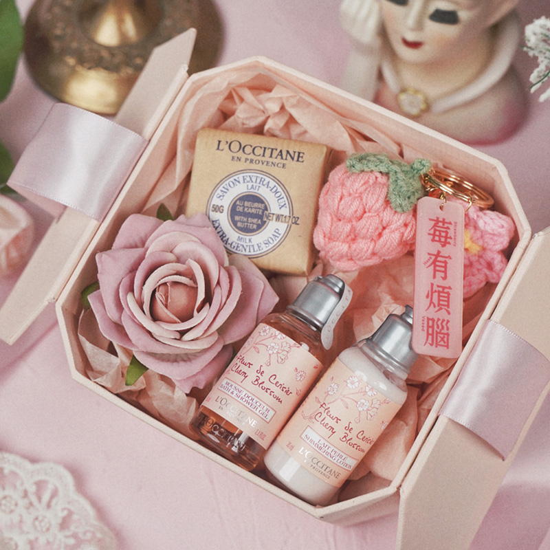 Ask (Peach) Your Heart (Soap Version) Full of Peach Qi (Shampoo Version) No (Berry) Trouble (L'Occitane Version) Good Things (Persimmon) Hair (Flower) Born (Berry) No Trouble (Shower Gel) Good Thing (persimmon