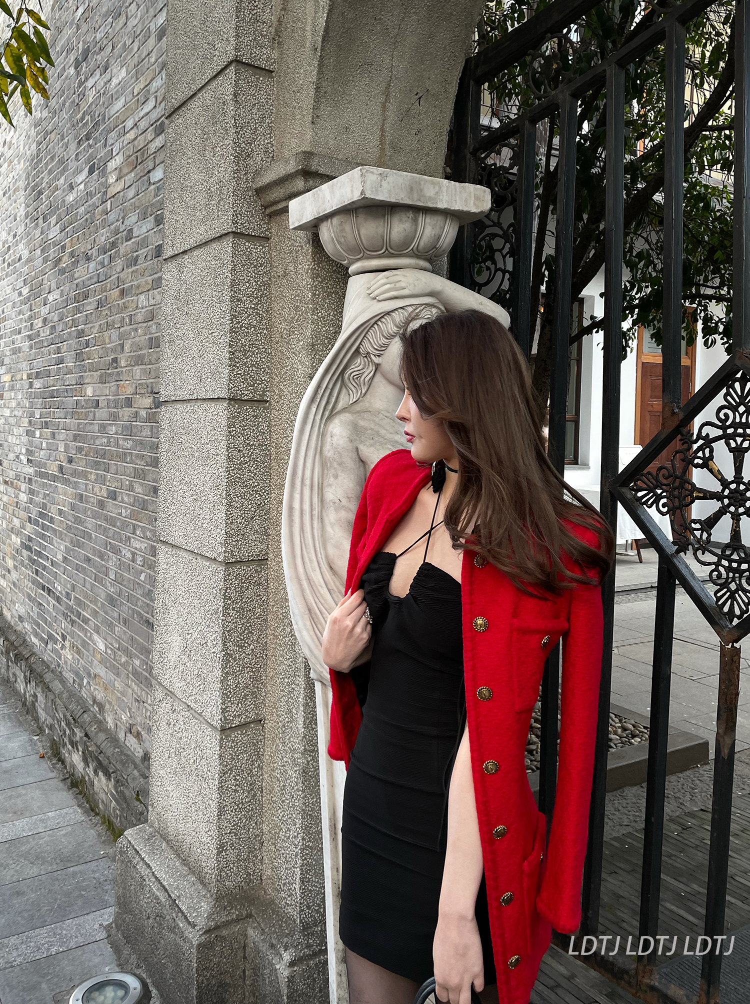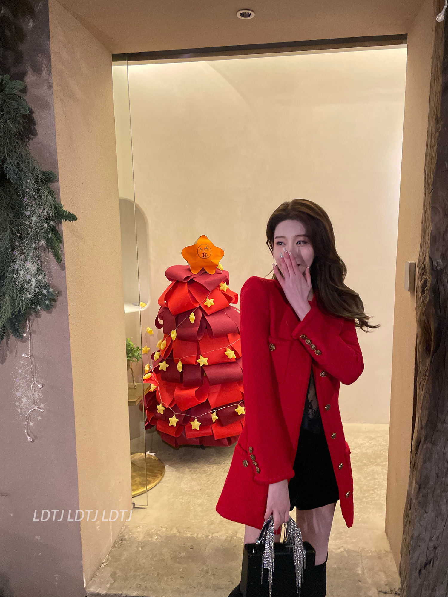 LDTJ high-definition 22 new red woolen coat women's high-end single-breasted thick temperament mid-length coat