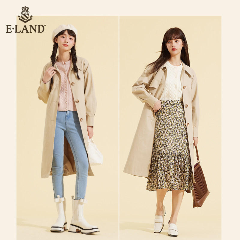 ELAND cloisters 2022 Spring new minimalist design feel adjustable with belt long version of the card its color windweaters