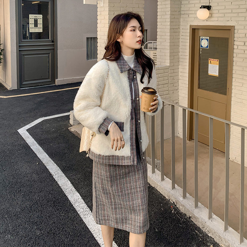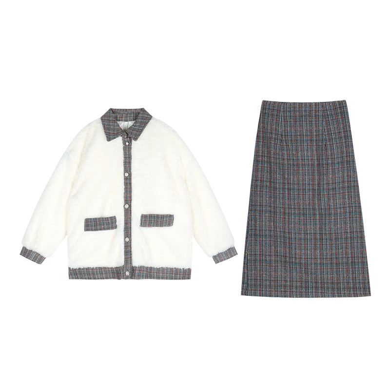 Lamb wool coat half skirt (suit) OK (cashew art senior feel don't give a nice stunning unique design sense little crowdsourced gentleness department Versailles art student first love) white lamb fur coat (single