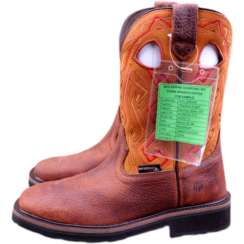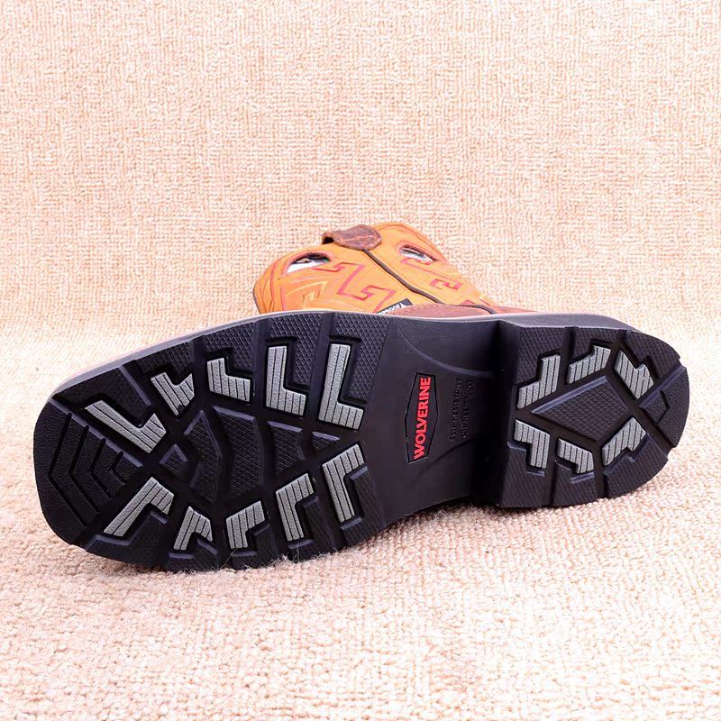 Anti-tap layer cow leather electric embroidered version WOLVERINE wofrin locomotive boots sewn line square head foreign trade Martin boots