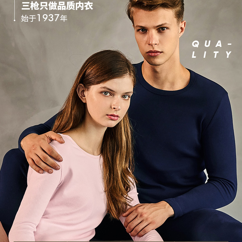 Three guns underwear official flagship store heating clothes men's cotton thick half turtleneck autumn and winter round neck women autumn clothes sanitary pants