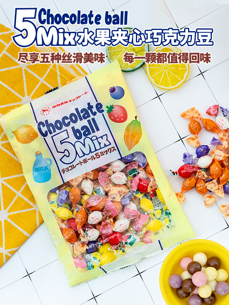 Japan Takaoko Takaoka 5-5 Fruits Taste Sandwich Chocolate Balls 100 Joy Sugar Snacks Happen-Taobao