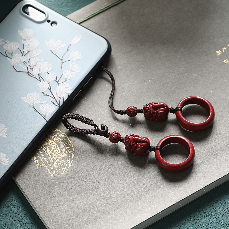 Cinnabar Pixiu mobile phone chain lanyard pendant for men and women exquisite pendant U disk shell ring buckle natal year small pendant