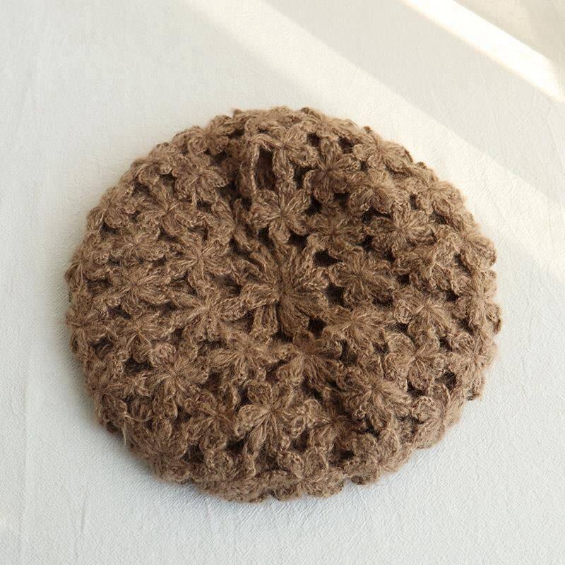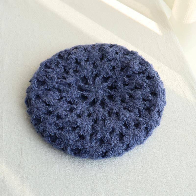 Wool Flower Bud Winter vintage double hook flower beret remake wool hat handmade bag head hat sweet