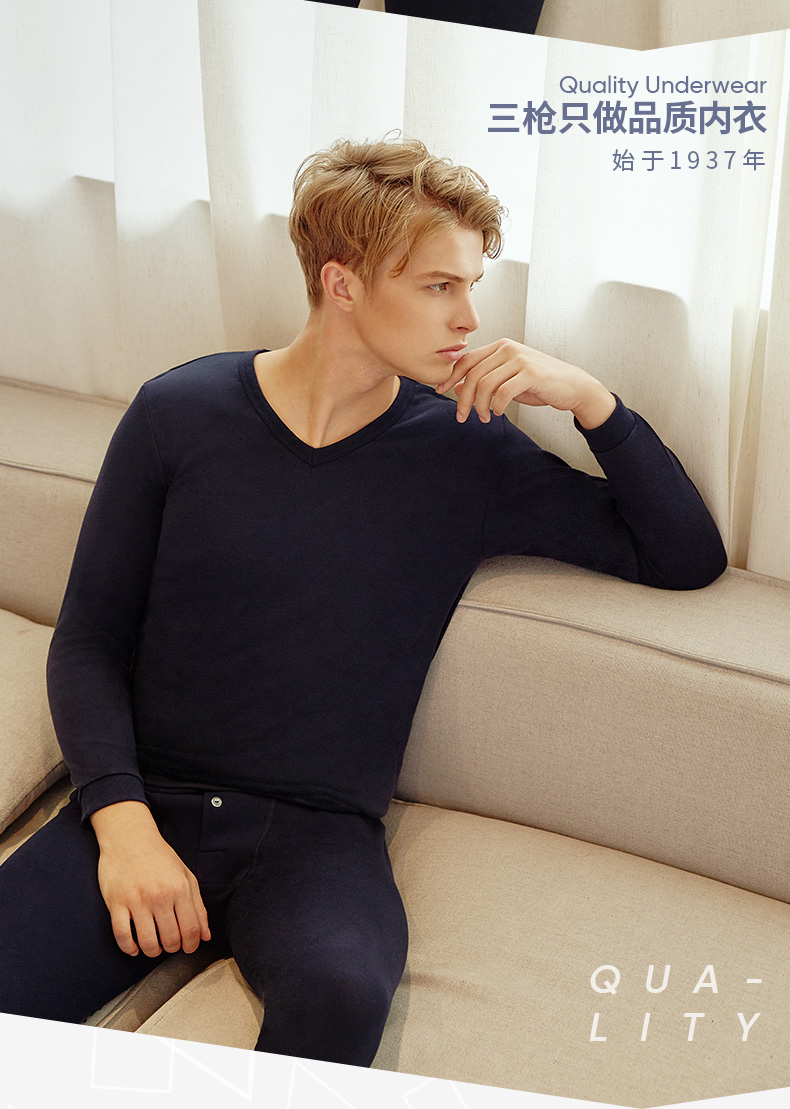 Three Guns Underwear Official Flagship Store Official Website Men's Tops Cotton Thin Autumn Clothes Long Sleeve Round Neck One-piece Tops Women
