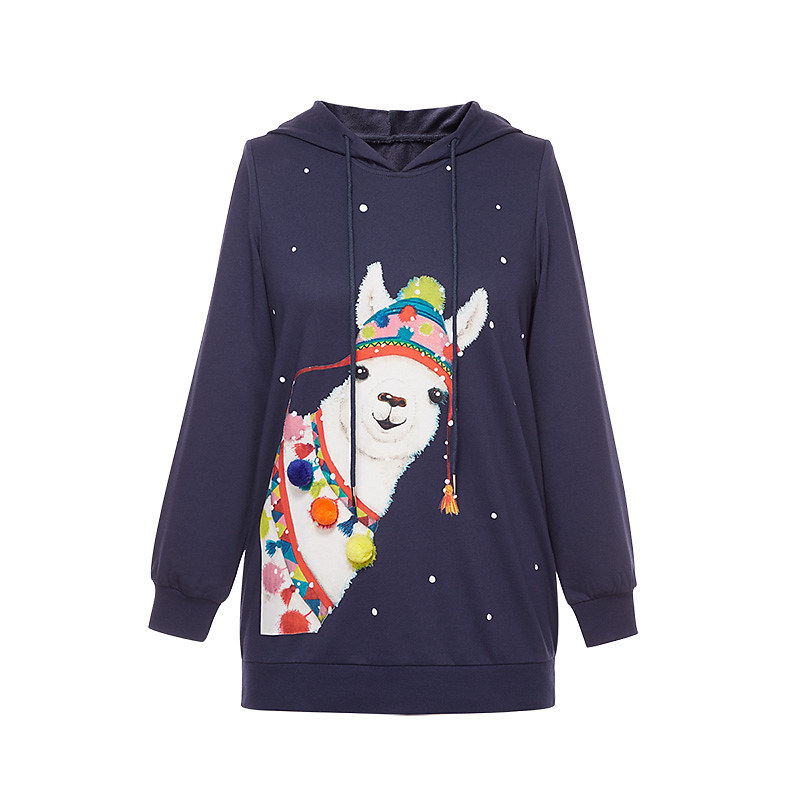 MsShe Plus Size Women's 2022 New Spring Dress Girl Heart Age Reduction Alpaca Printed Hair Ball Long Edition Thick Cotton T