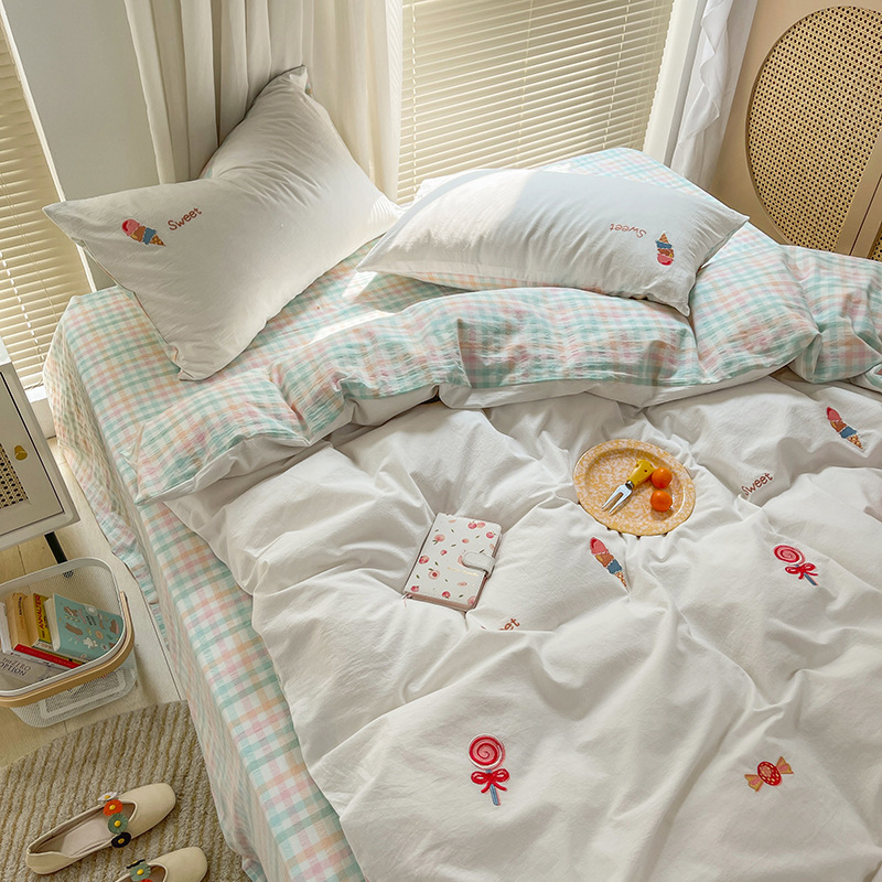 Full cotton color weave washed cotton quilts covered with four pieces of double sided pure cotton nude sleeping cream white bed Bedding Linen Bed 4