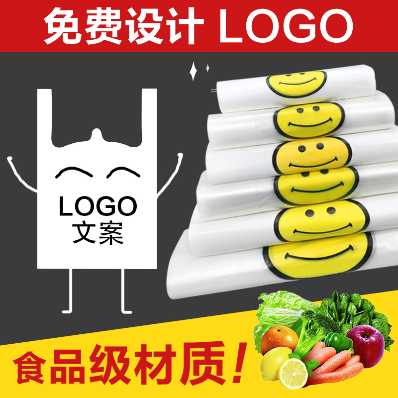 Red smiley plastic bag custom shopping gift plastic bag commercial delivery packaging convenience bag food bag wholesale
