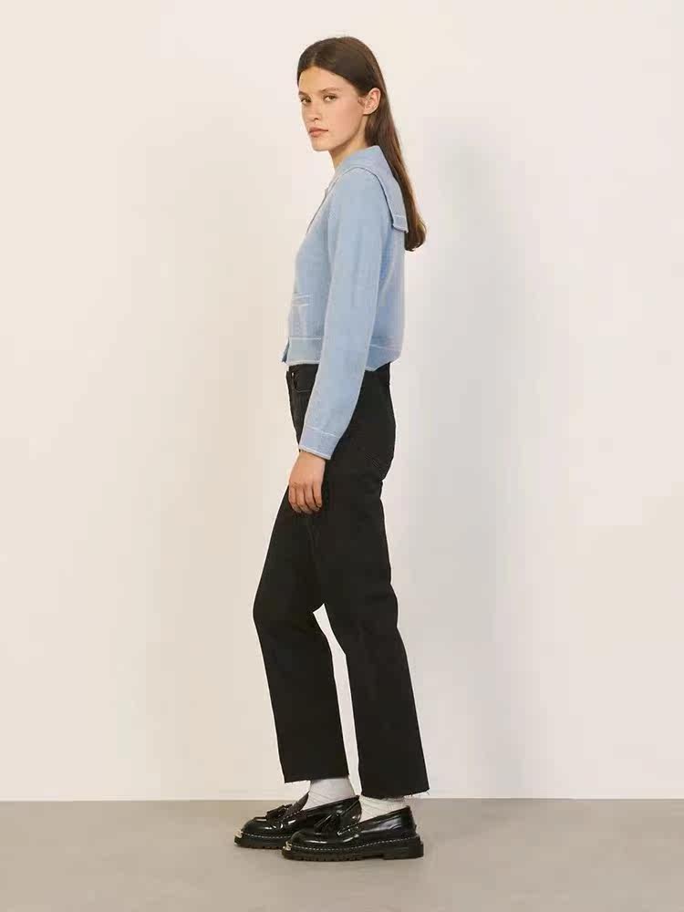 French sandro 21 fall-winter small fragrance navy collar knit cardigan short coat SFPCA00494