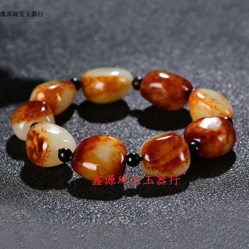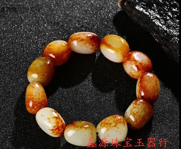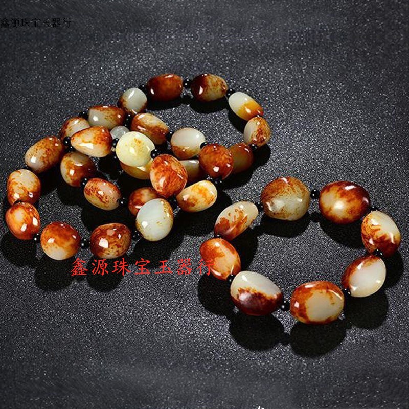 Ethnic style Xinjiang Hetian jade hand chisel white jade original stone red leather bracelet couple men and women models jade hand chisel send certificate