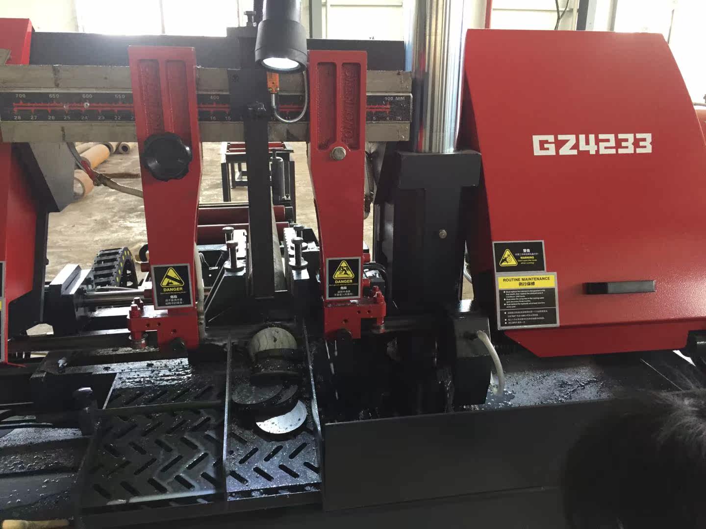 Morning Dragon Horizontal Double Column Fully Automatic Numerical Control Metal Band Saw Bed GZ4233 Cut Round Steel Automatic Feed Holder Clamping