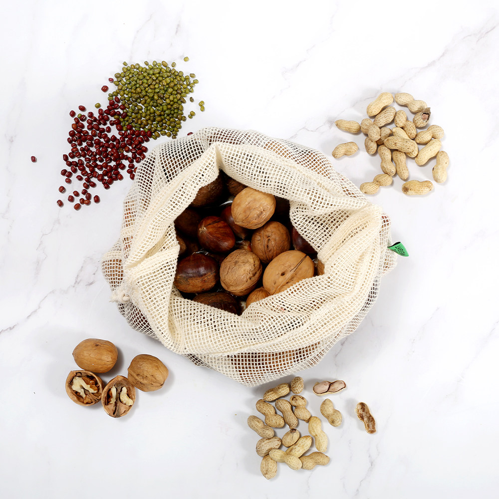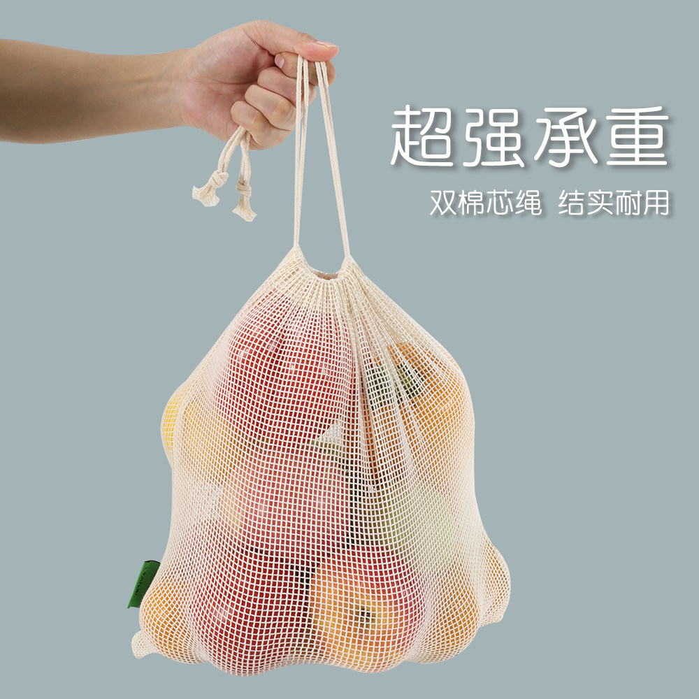 Pure cotton cloth eco-friendly net bag fruit and vegetable containing supermarket buy vegetable bag full cotton fruit draw rope bunches mesh bag washable-Taobao