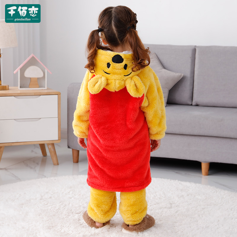 Children's flannel pyjamas warm autumn and winter little girl Home Sleeping Gown Girls Baby Cartoon Home Clothing Thickening