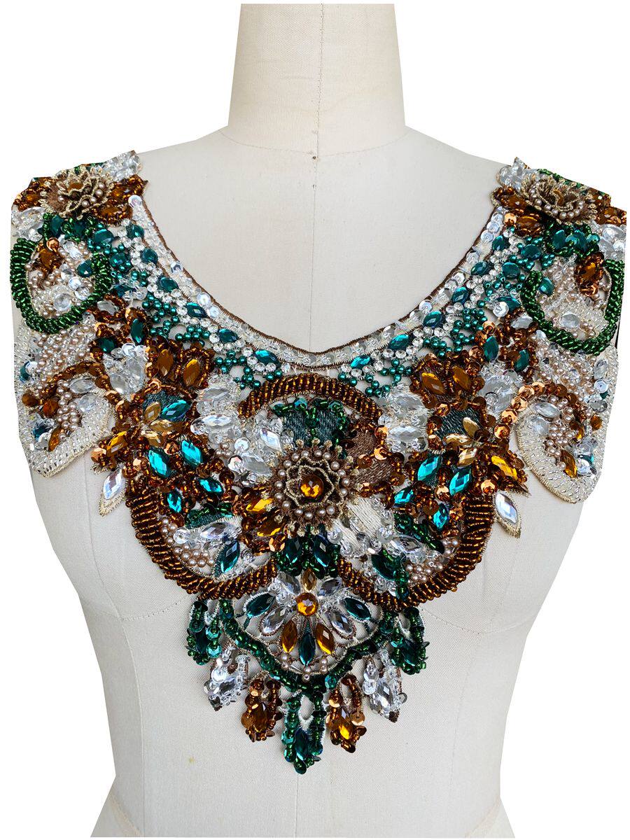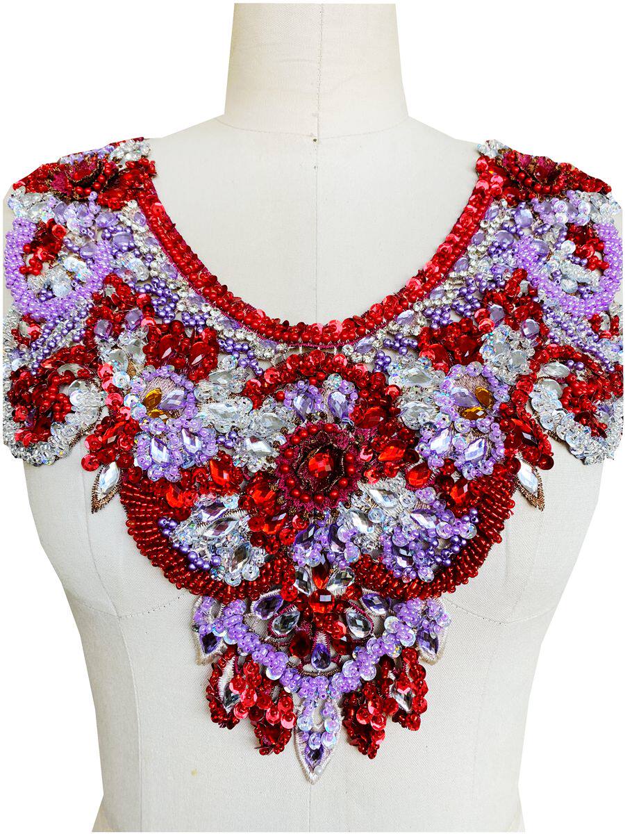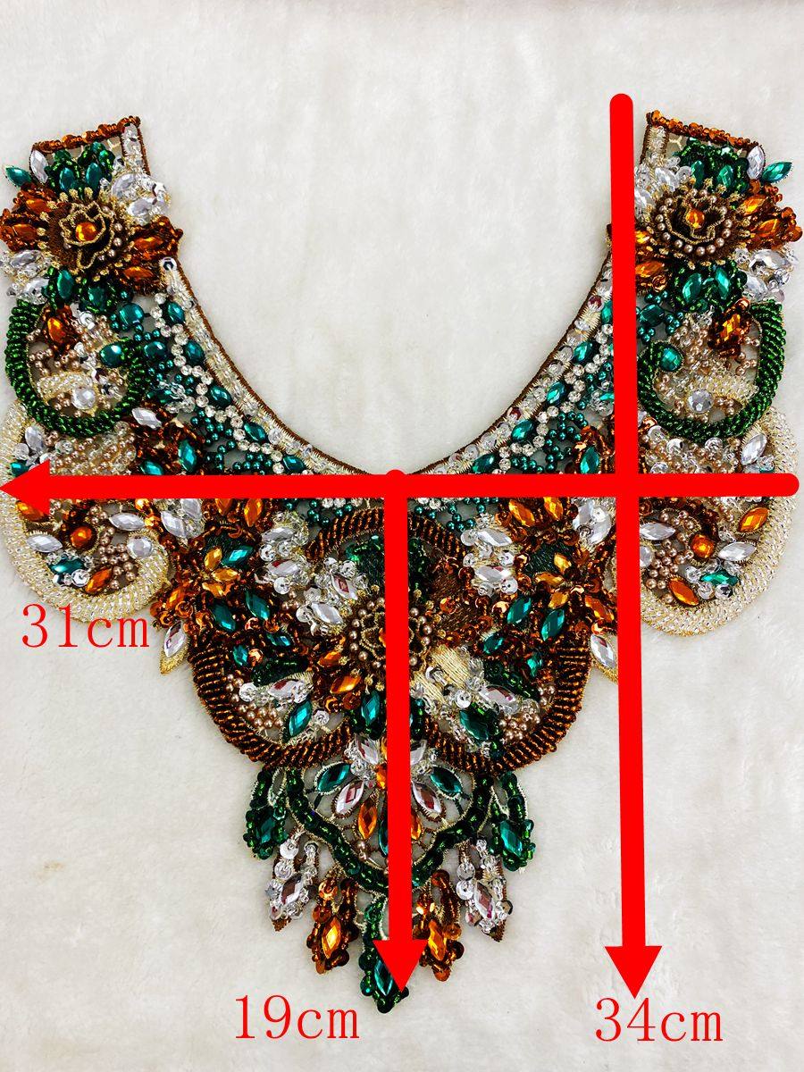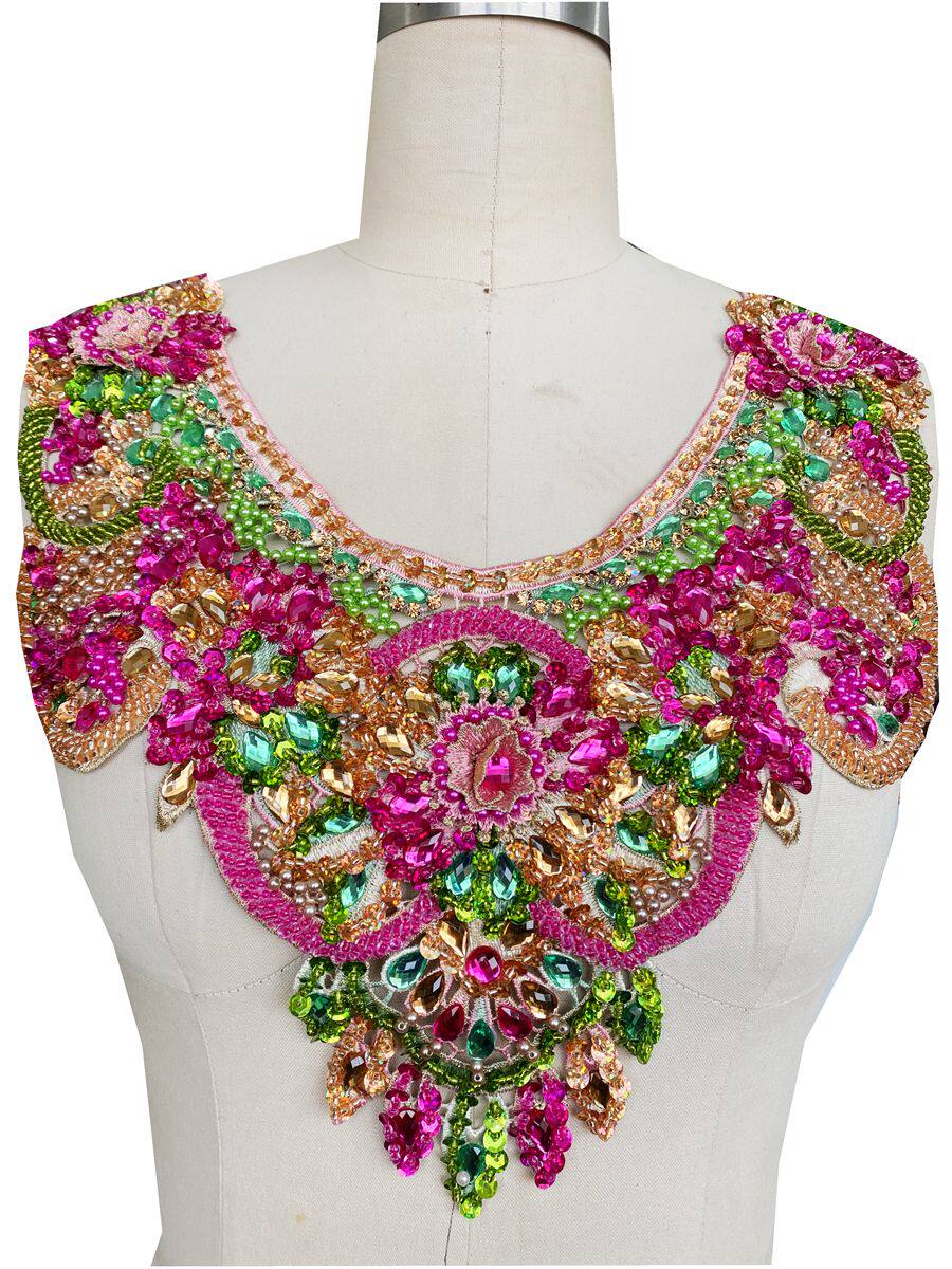 Heavy work sewn multicolored bright drilling lace with floral gown accessories to act out the l round neckline luxury decorative hand-stitched patch