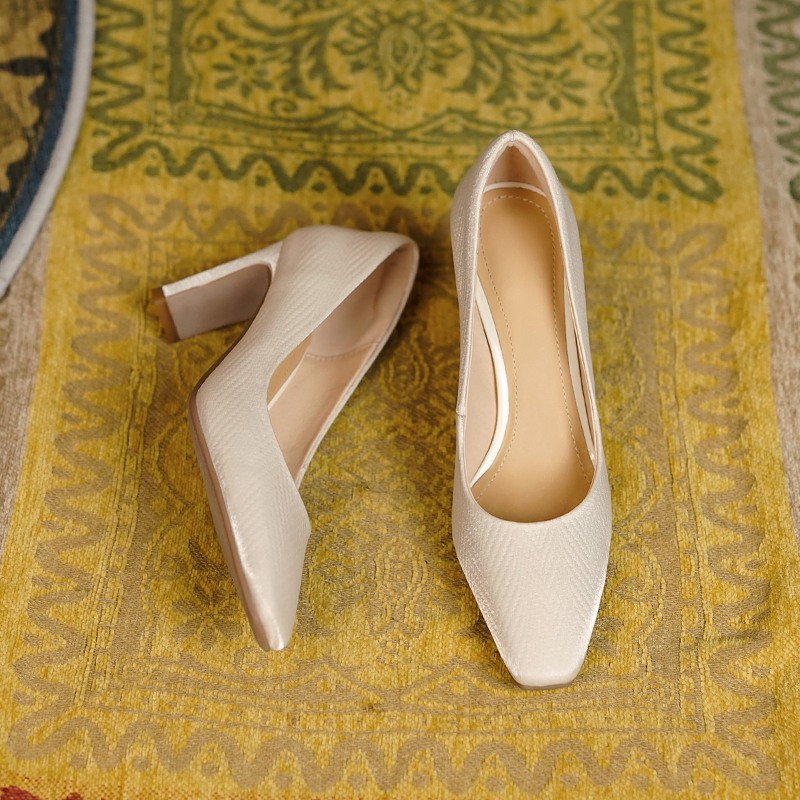 Chic is so beautiful ~ great to wear niche white high heels women's French wear square toe shallow mouth thick heel shoes
