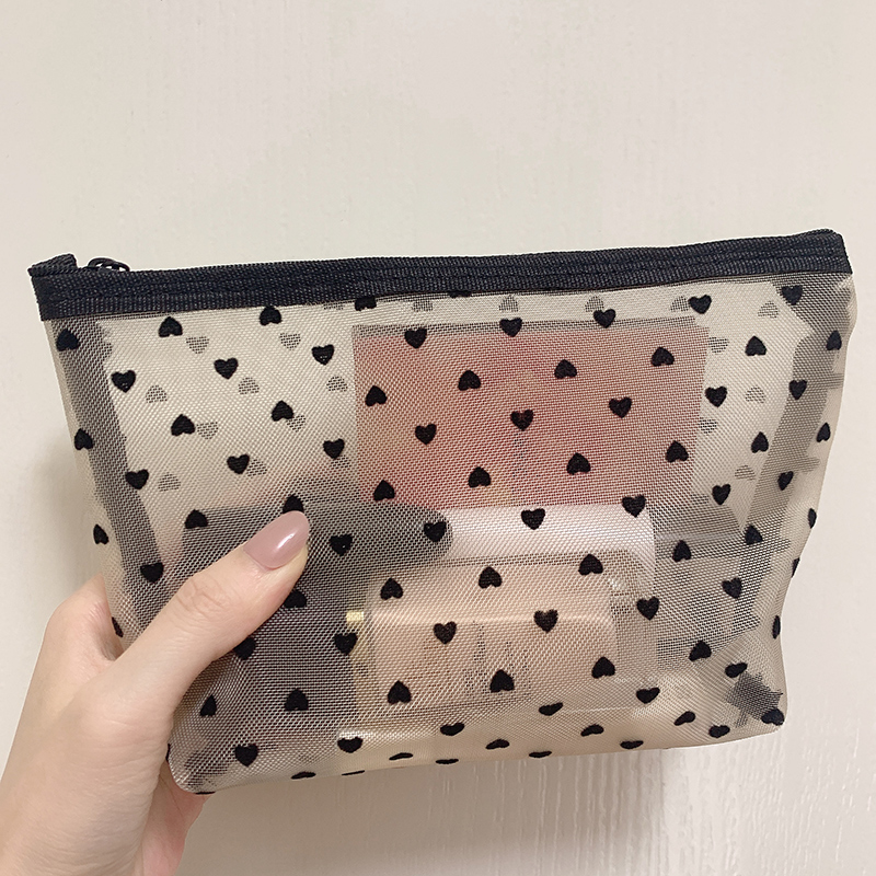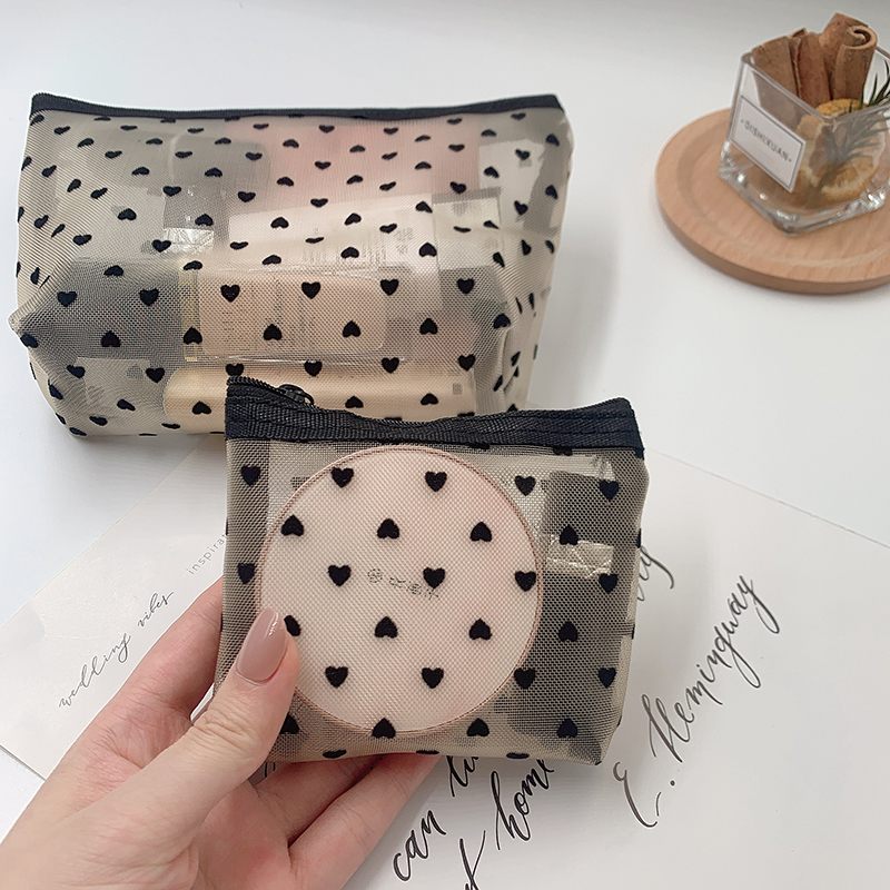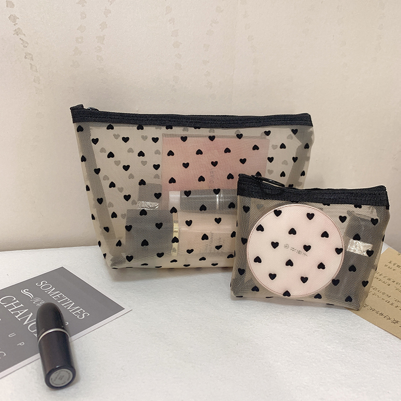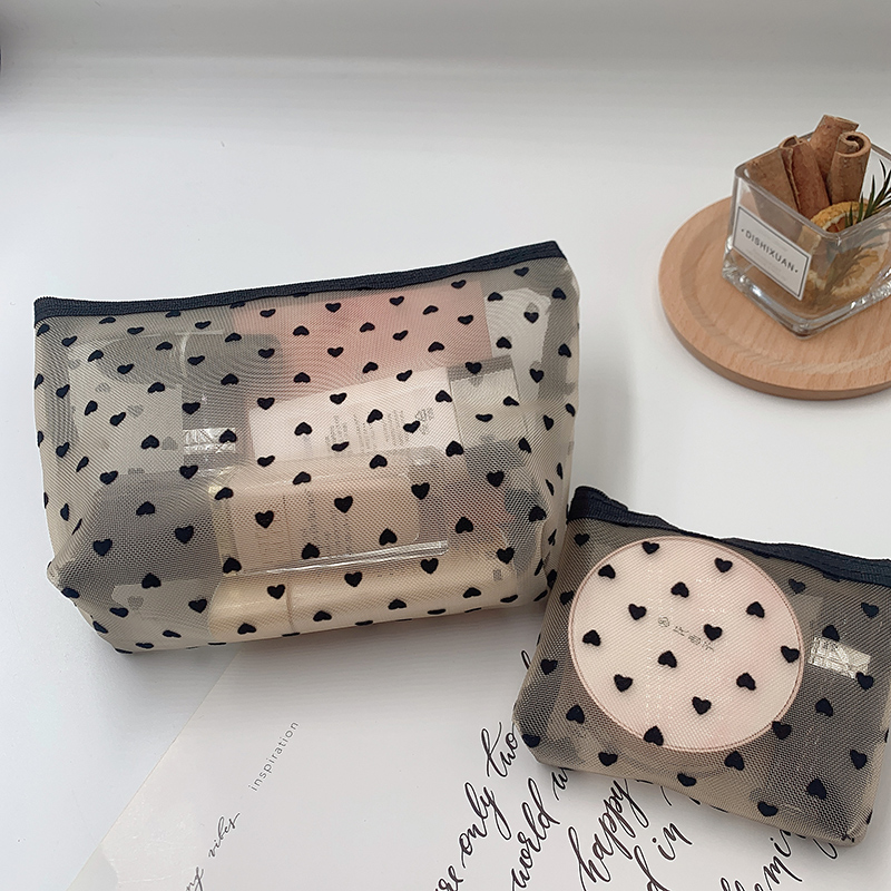 ins high-quality sentimental heart large-capacity mesh makeup bag portable portable lipstick air cushion wash storage bag small