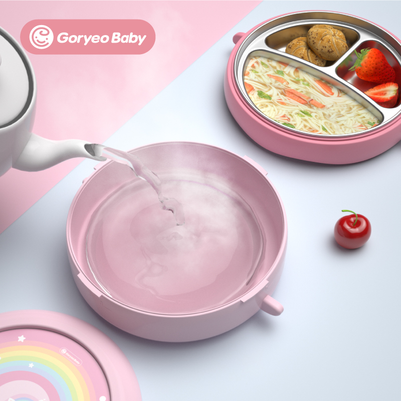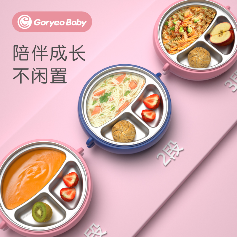 Korea baby 316 stainless steel children's dinner plate anti-drop suction cup water injection insulation bowl divided grid auxiliary food tableware set
