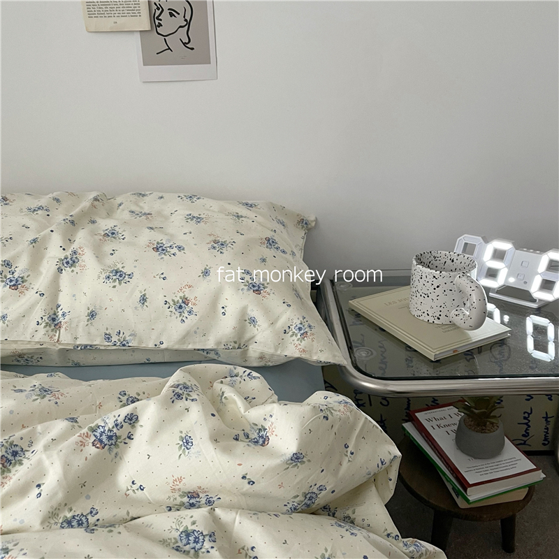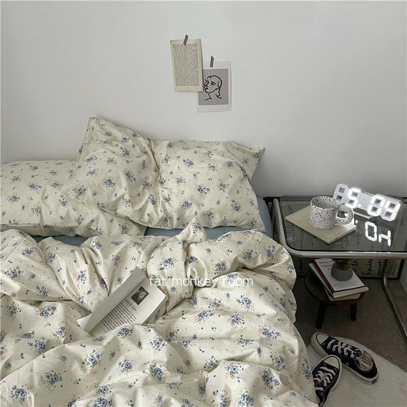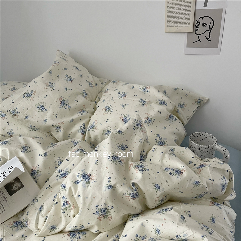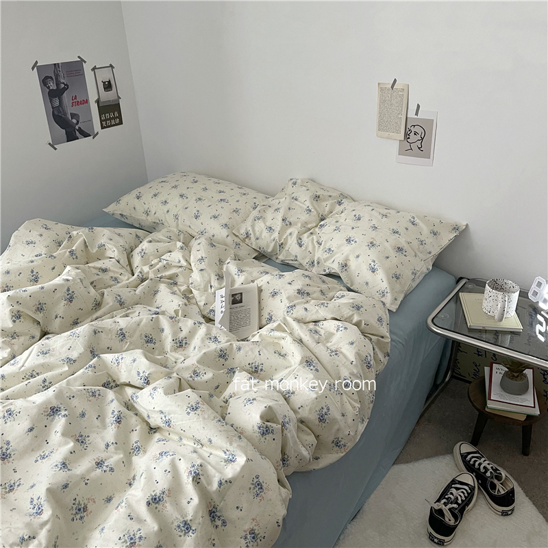 Biehouse deep |ins day style small crowdsourced retro crummy cotton combed cotton bed goods with four sets of single three-three-style