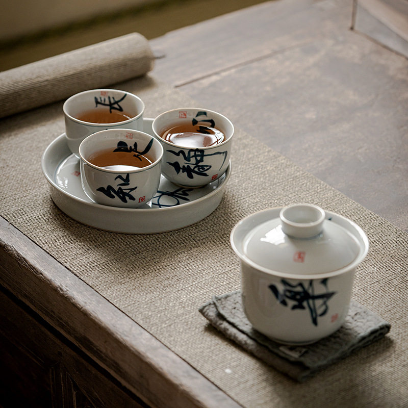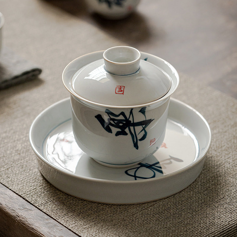 Retro Qingyi Taiwan-made bowl suit handdrawn calligraphic poetry brewing tea bowl ceramic kung fu tea toast bowl