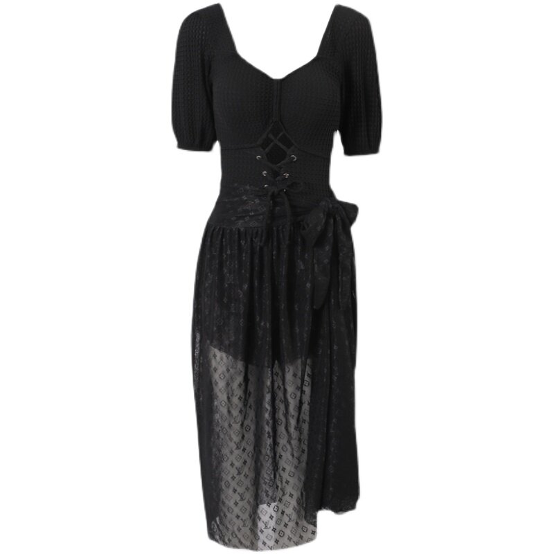 Large size swimsuit woman slightly fat mm sexy lace with slim new body to gather large chest spa swimsuit over knee