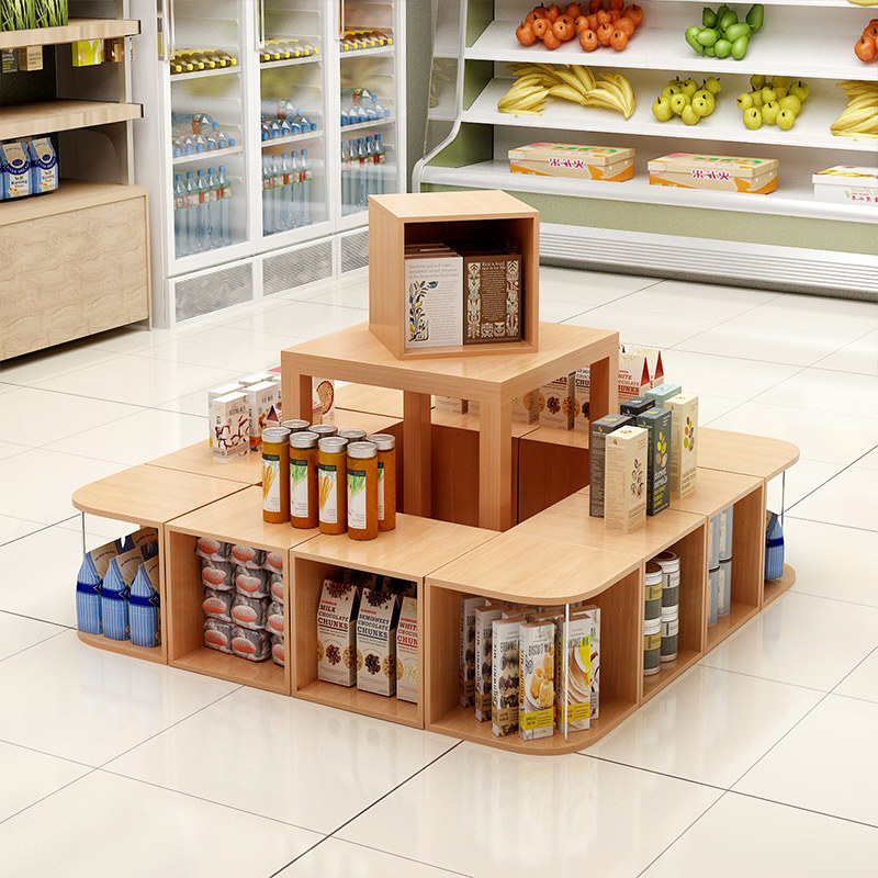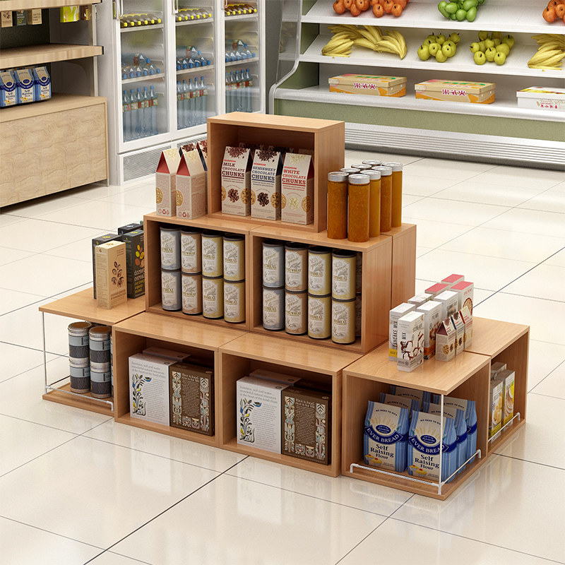 Supermarket Promotional Shelf Mei Chen Head Show Wooden Box Snacks Red Wine Beverage Collection Frame