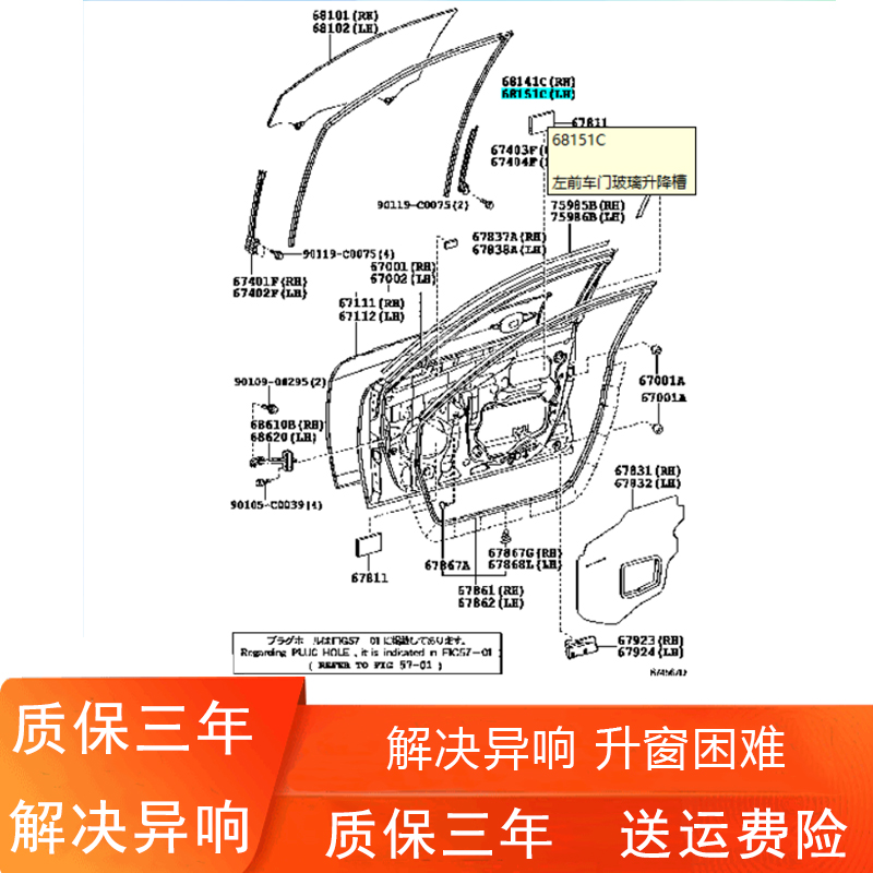 Suitable for six generations of seven generations of CAMRY doors glass lifting velvet strip original window sealing adhesive strip guide mud tank