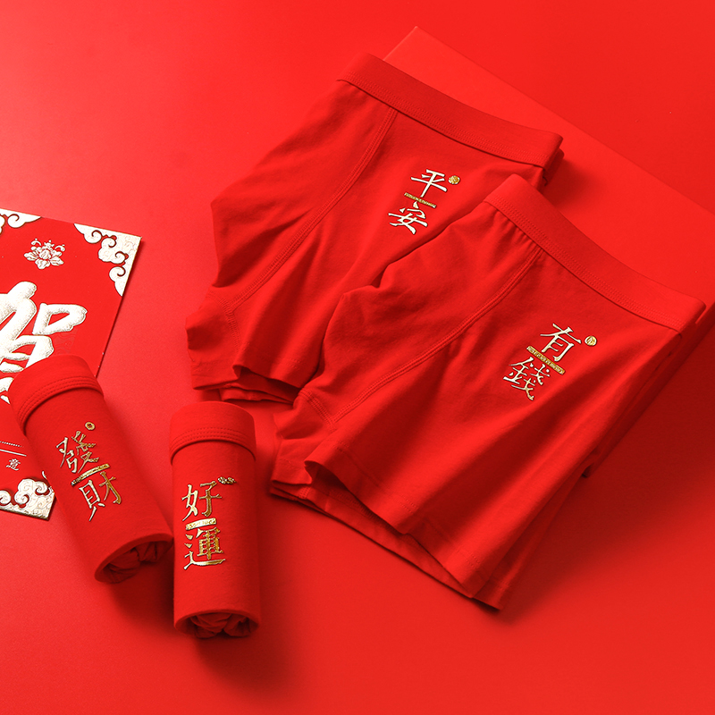 Tiger years Honour's life red underpants men's pure cotton full cotton four-corner pants large red metal tiger gift men's four-corner pants to get married