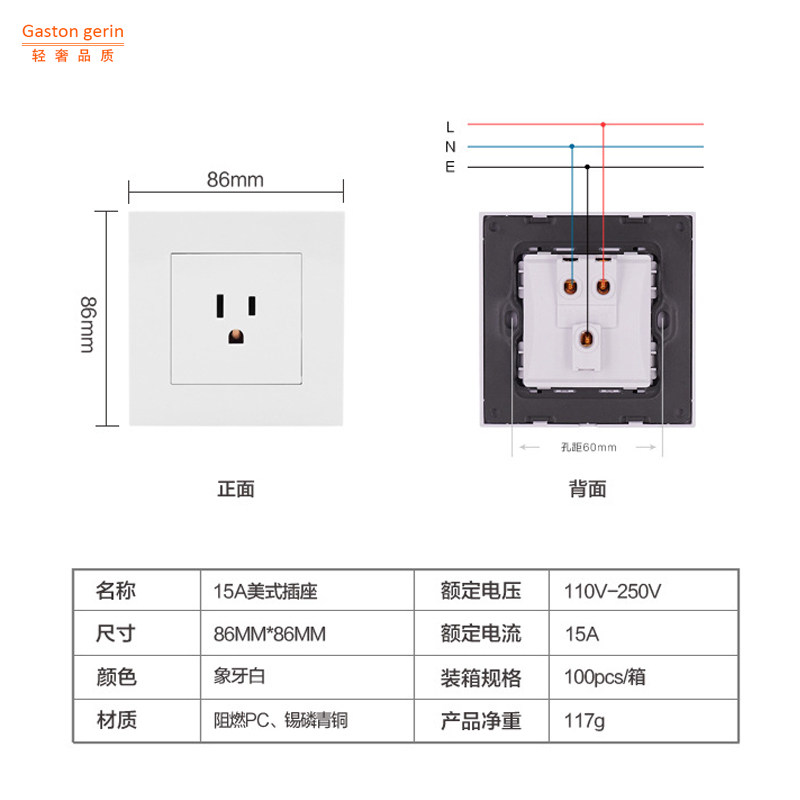 American Socket 15AAmerican Wall Panel 86 Type Concealed American Triple Hole Power Socket American Taiwan Socket