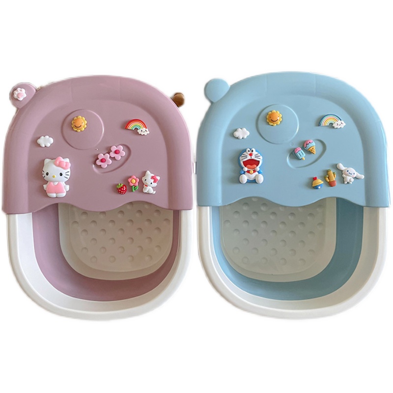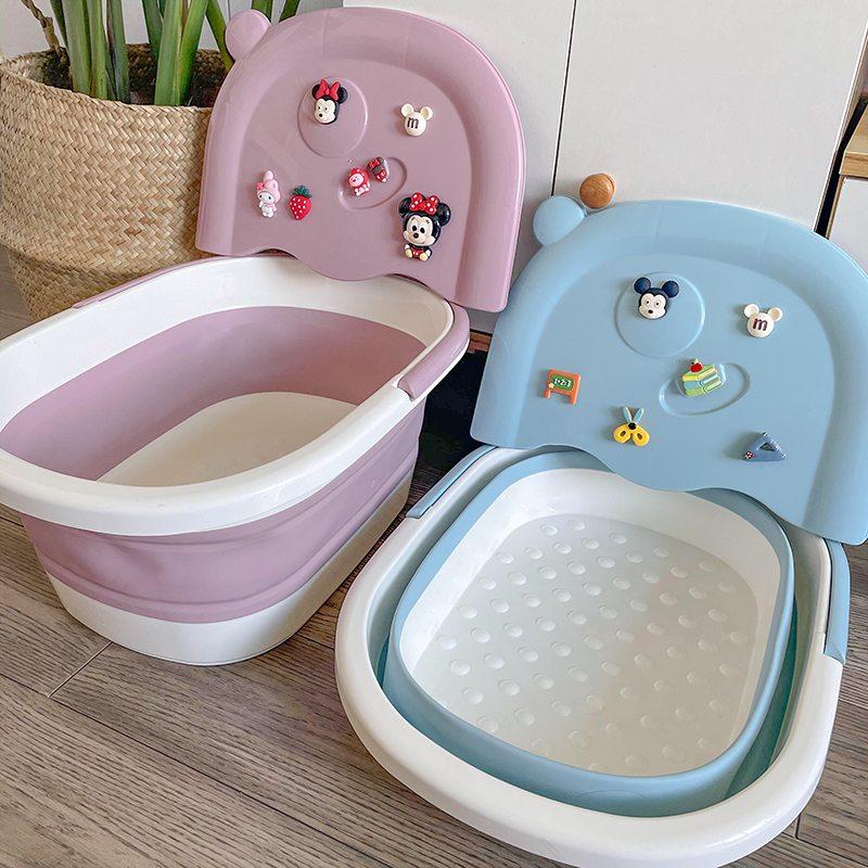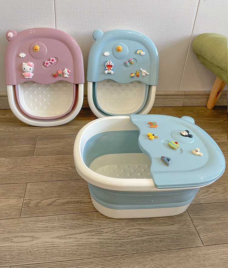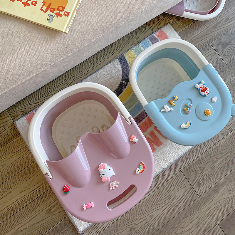 Children's folding foot bath bucket home with lid insulation children's foot wash bucket small dormitory massage heightened deep foot tub