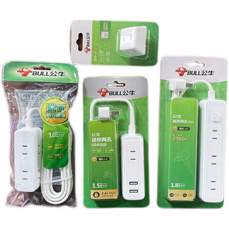 Bull two-pin socket plug extension cord power extension two-hole two-jack plug-in board with line mini small socket