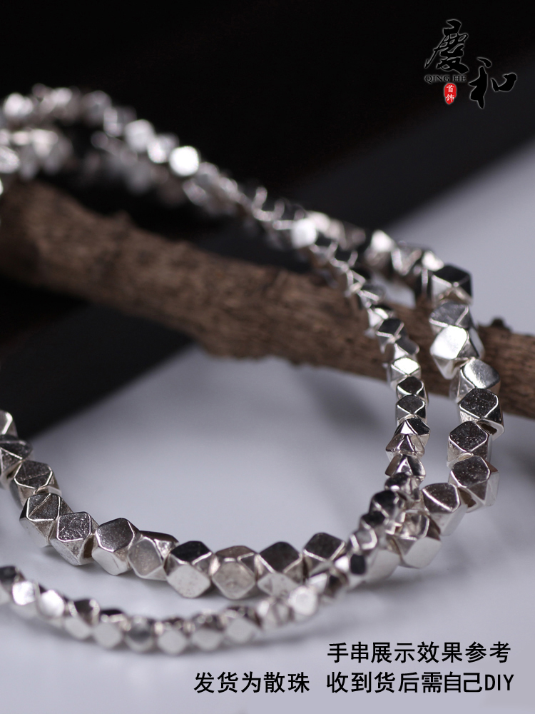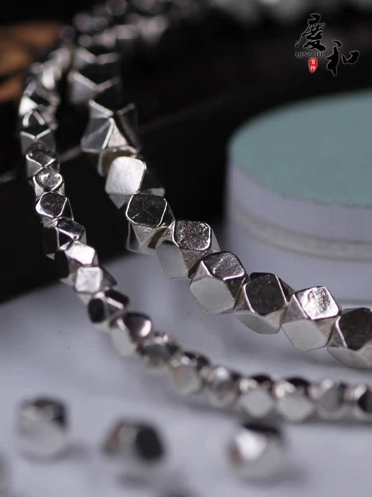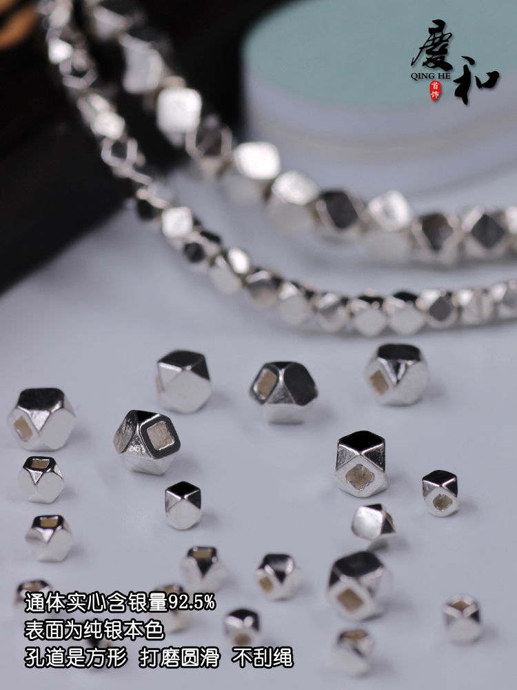 S925 Pure Silver Clear Mai Breeze DIY Handmade Silver Loose Beads Geometric Section Beads Hand Strings Bracelet Solid Sepal Beads Block Beads