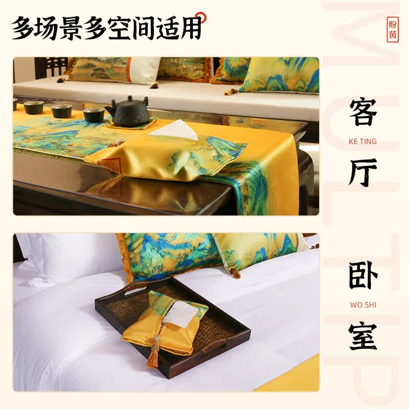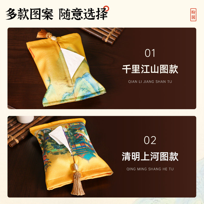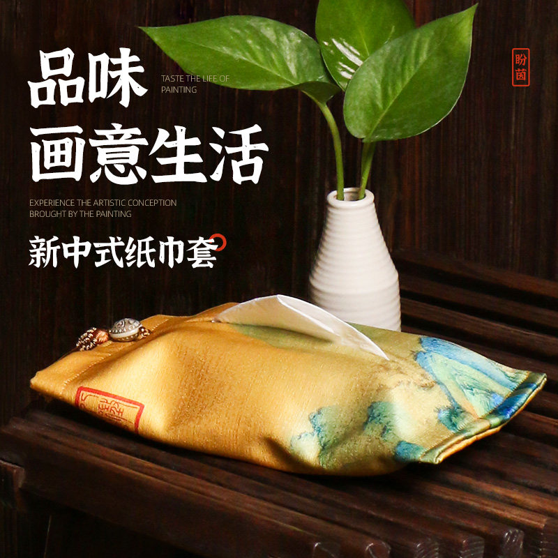 New Chinese paper towel set fabric pumping paper bag tea ceremony ancient painting paper towel bag pumping paper box living room coffee table paper towel box home