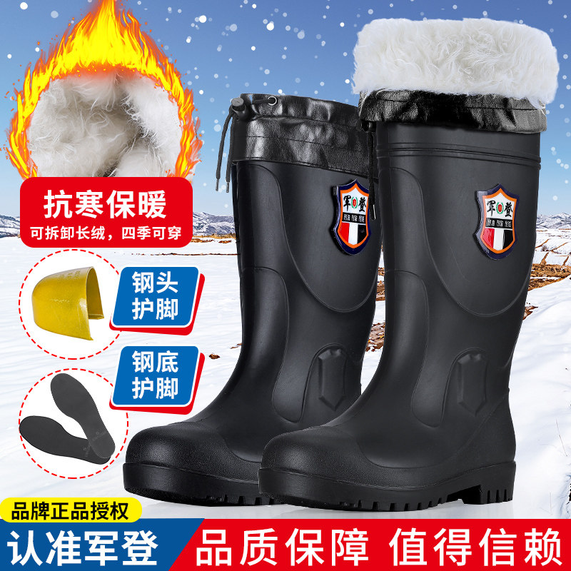 Military Deng steel head steel bottom anti-smashing anti-stab protection rain boots winter outer wear plus velvet thickened removable warm rain boots men