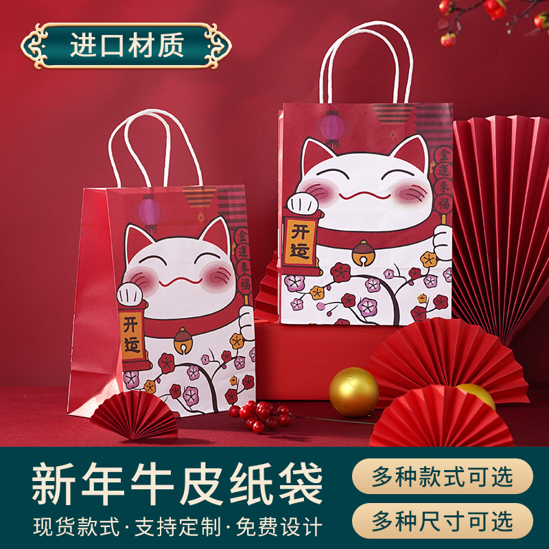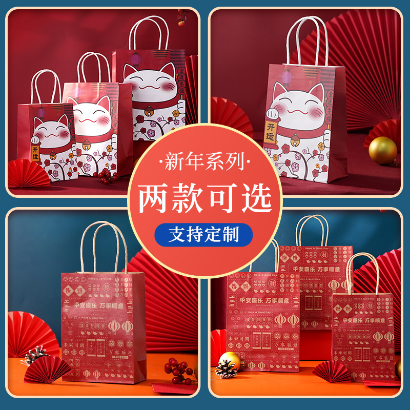 New Year gift bag Tiger year portable paper bag Chinese New Year gift box packaging small gift bag Spring Festival red snack gift bag