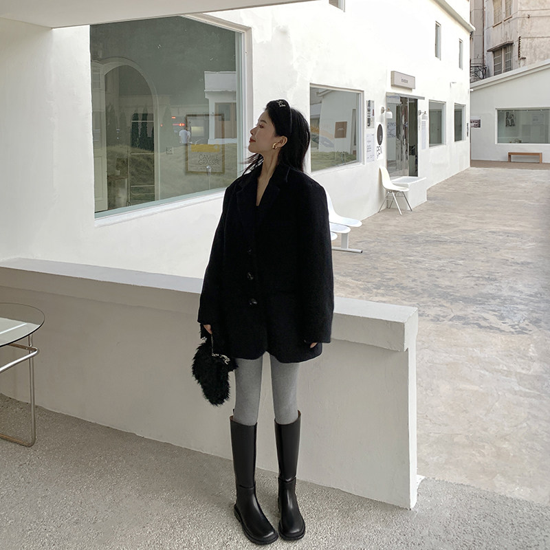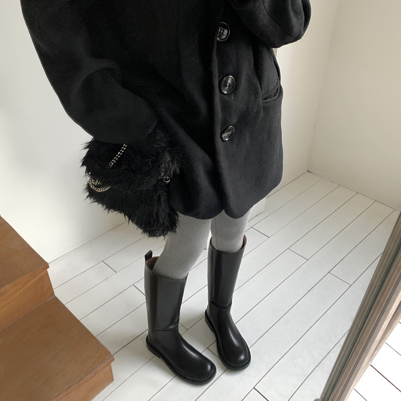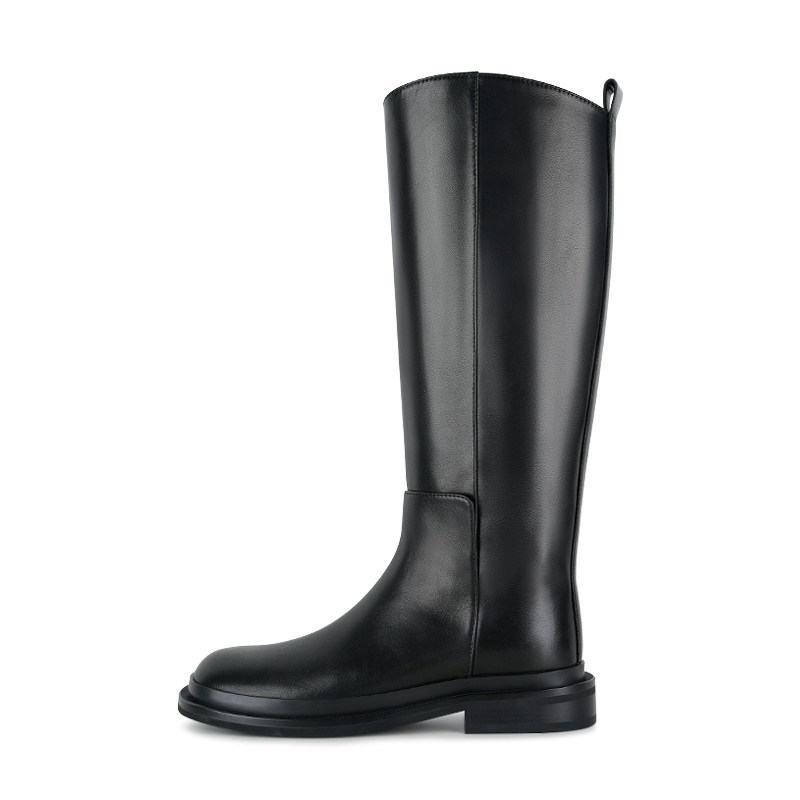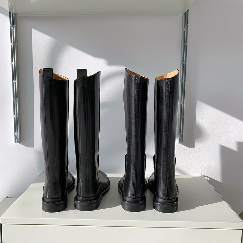 ABaojia small crowd 100 lap up slim but knee riding boots Women's new long boots flat bottom black cow leather high cylinder boots