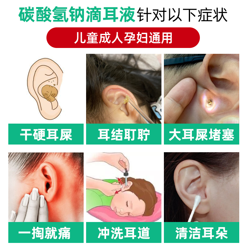 Sodium bicarbonate ear drops for people to remove earwax softening liquid adult infants and children hard earwax cerumen water ear wash