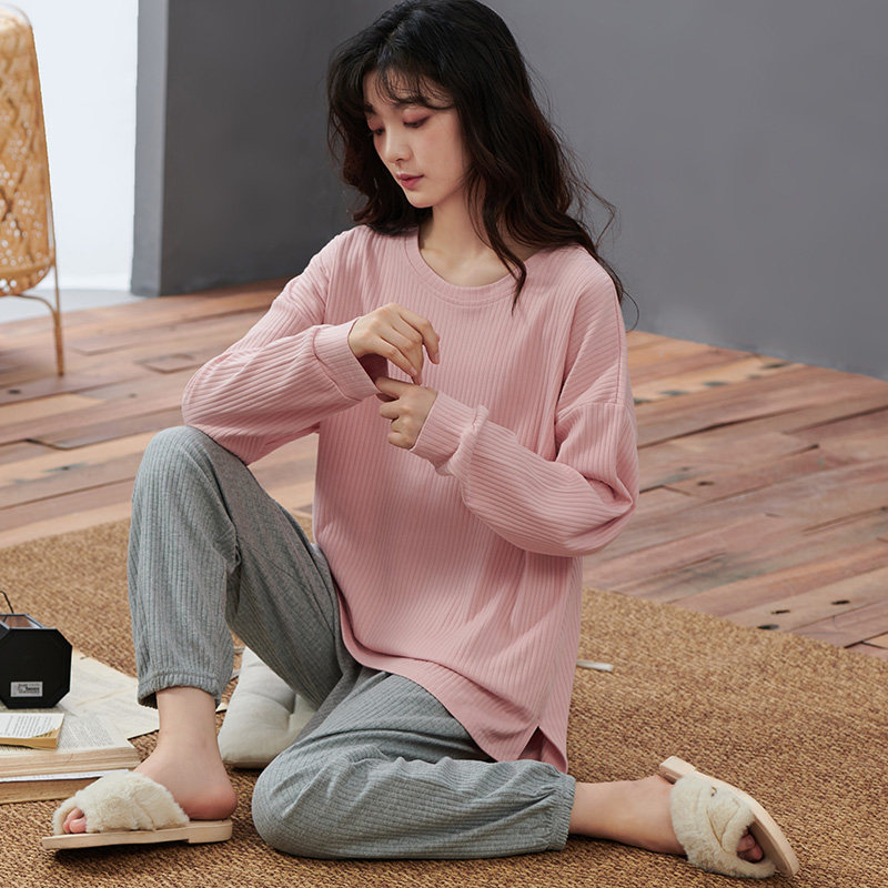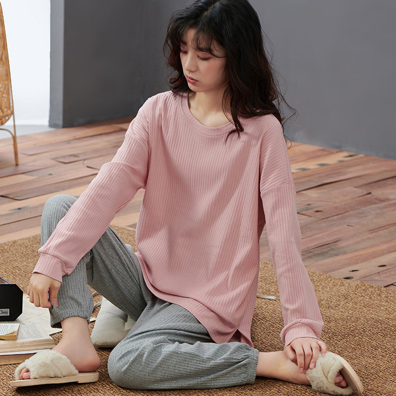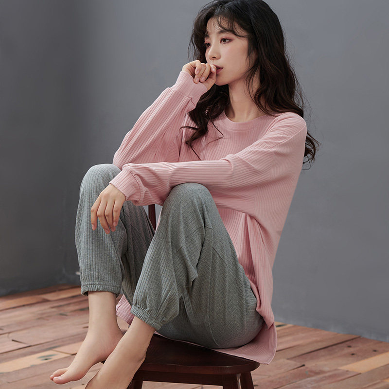 Pyjamas ladies spring and autumn pure cotton pure color minimalist approachable outfitting out of the house Casual Summer Long Sleeve Thin-Home Clothing-Taobao