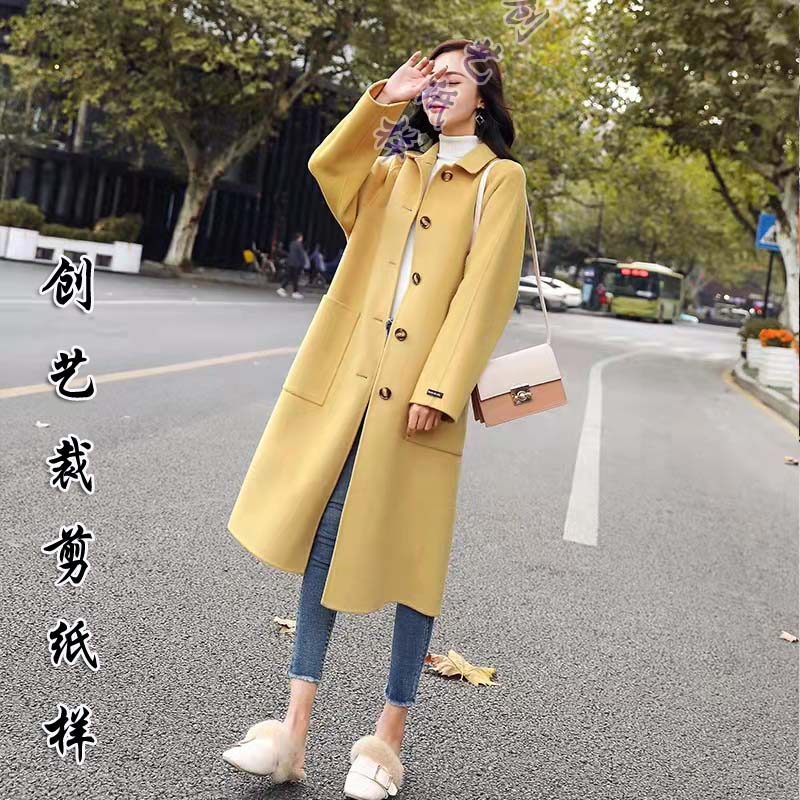 Pattern version Q306 coat women's mid-length Korean version 2021 autumn and winter new loose woolen coat cutting drawing Daquan