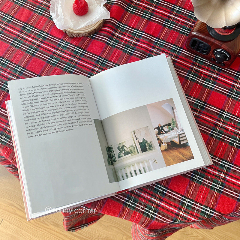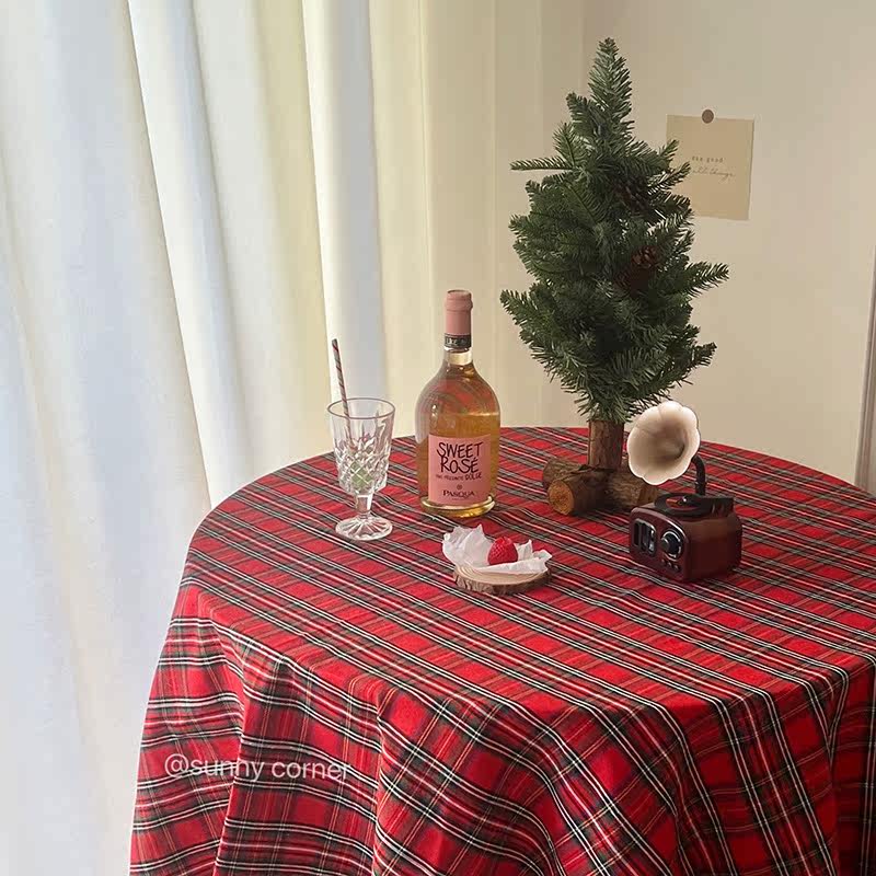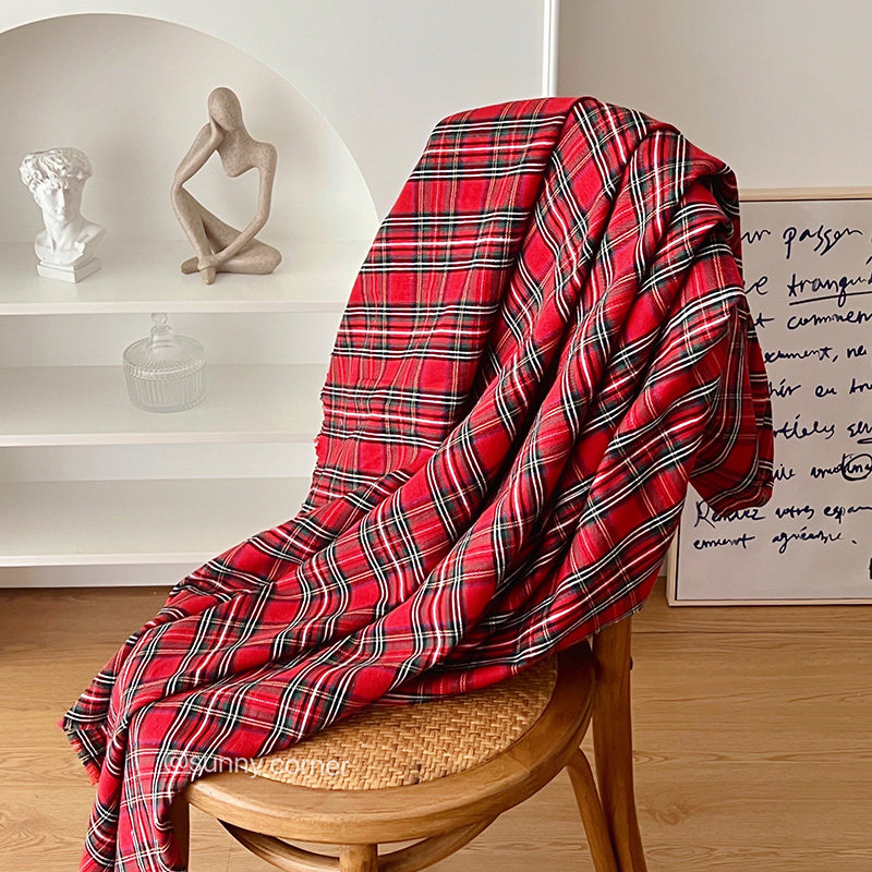 Yuan Qi Corner ins Retro Scottish Red Plaid Tablecloth New Year Red Plaid Photo Background Decorative Dining Cloth