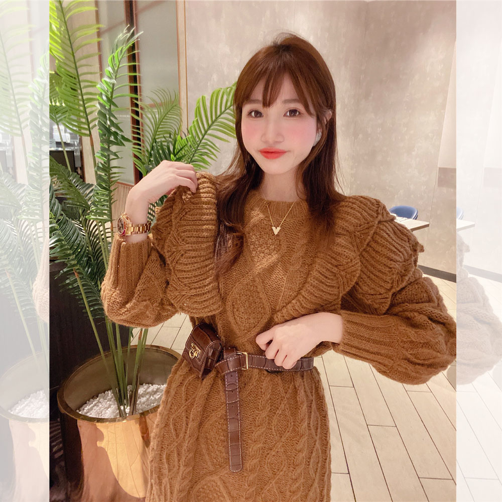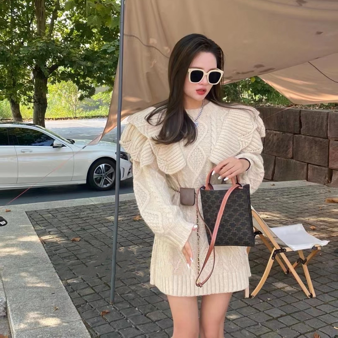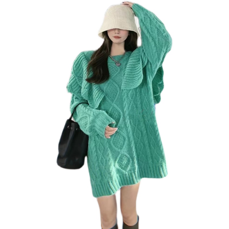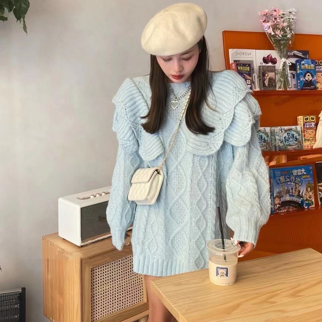 Autumn Winter Temperament Sweet and gentle Wind and twist in flying sweatshirt flying sleeves Long-style sweater dresses Children with lotus leaf side blouses-Taobao