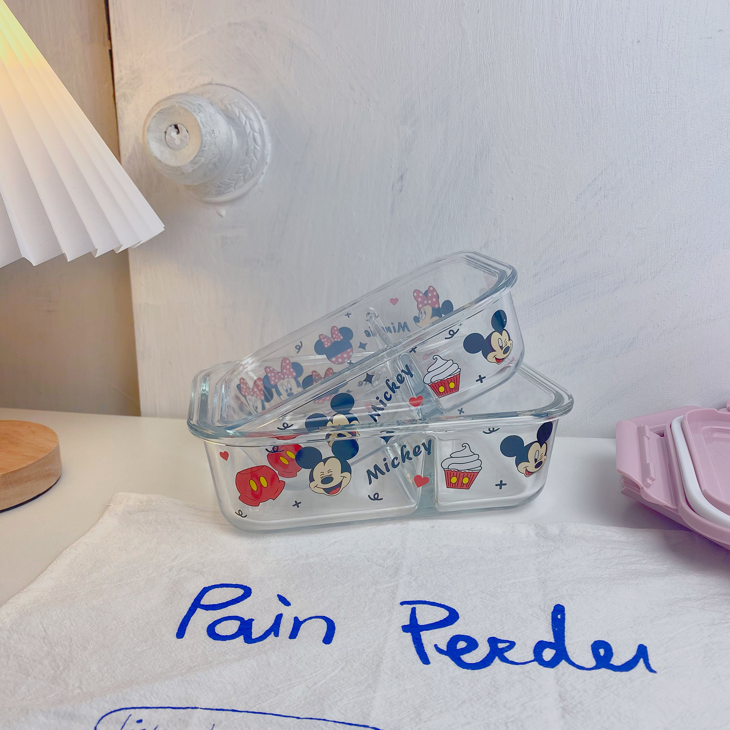 Small 650ml Mickey two-cell glass rectangular bowl large 1000ml Mickey two-cell glass rectangular bowl