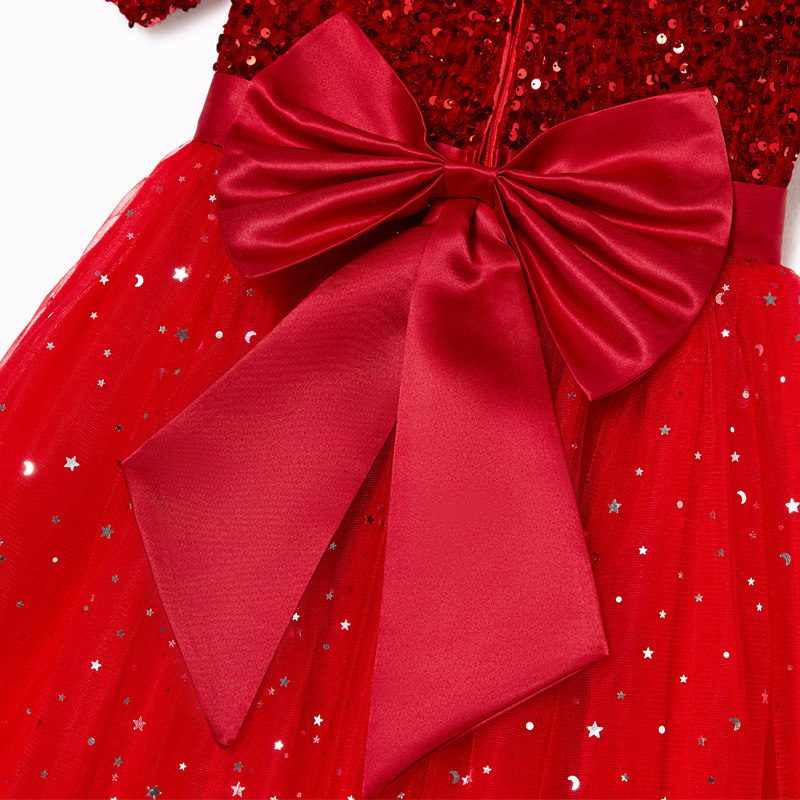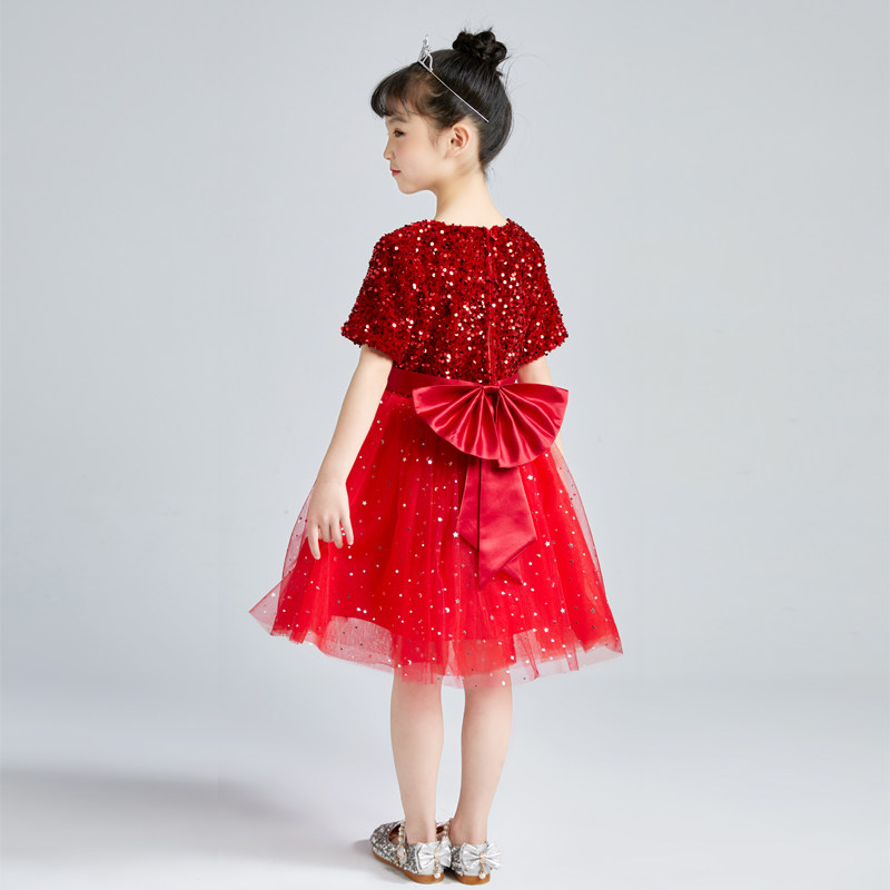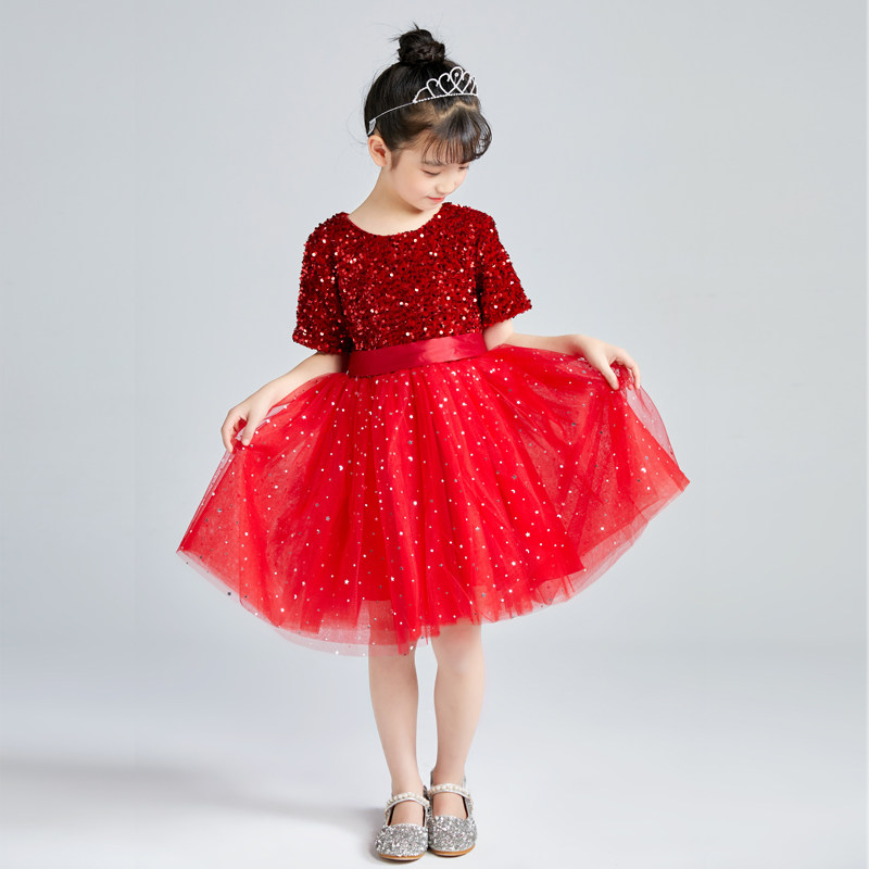 Children's dress red girl princess dress pettiskirt performance costume girl host piano performance chorus costume