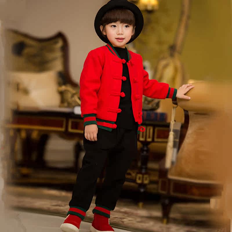 Children's Tang suit winter boys Hanfu Chinese style girls thickened New Year woolen suit performance costumes New Year's greetings