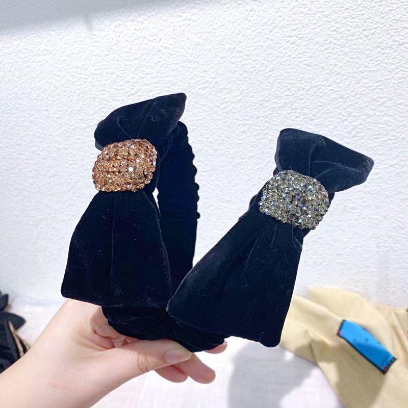 Yi Nengjing the same headband ins wind retro rhinestone net red retro velvet bow pleated headband fairy hair
