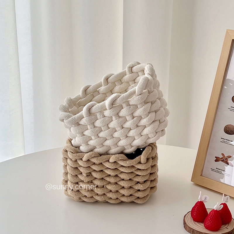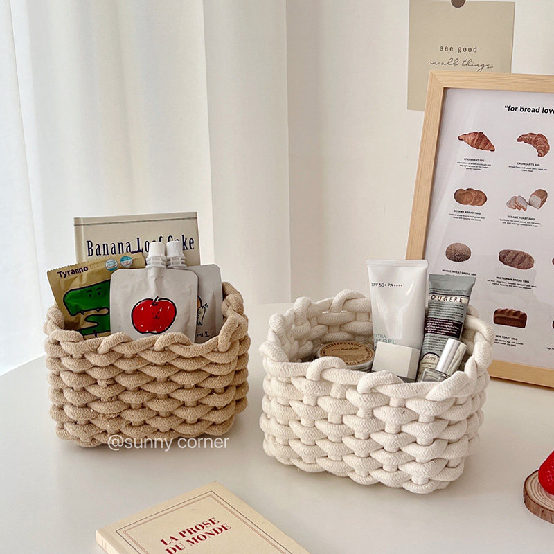 Japanese fabric cotton rope woven storage basket desktop cosmetics finishing storage box ins wind sundry basket storage basket