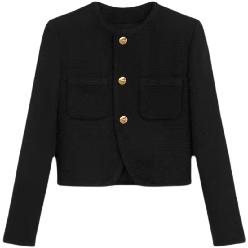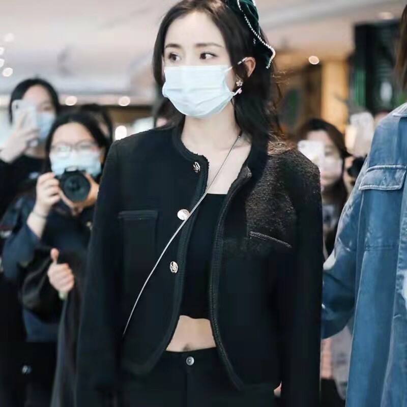 Cherry maje autumn and winter Yang Mi Xu Lu the same black tweed small fragrant wind short woolen coat top